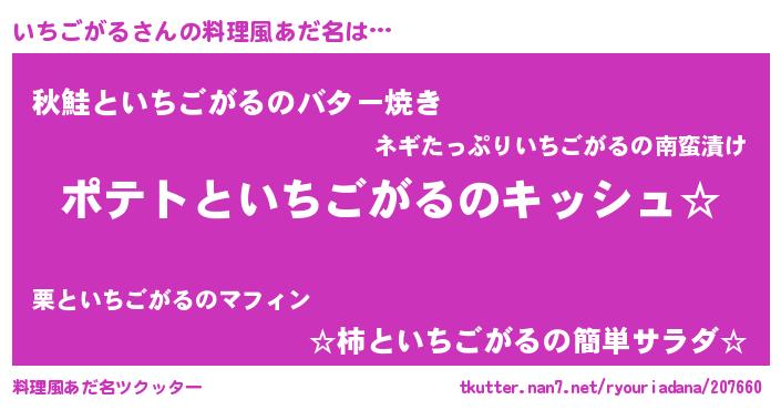 | 男性向けラノベタイトル風あだ名 | 『いちごがるの嫁は女の子じゃないと思った?』 |