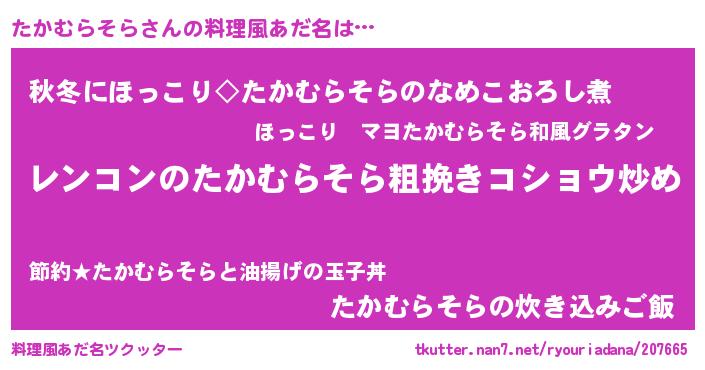 | 意味不明あだ名 | 『自称たかむらそら』 |