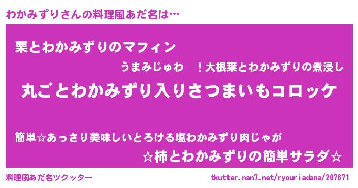 | 意味不明あだ名 | 『住所不定無職わかみずり(13歳)』 |