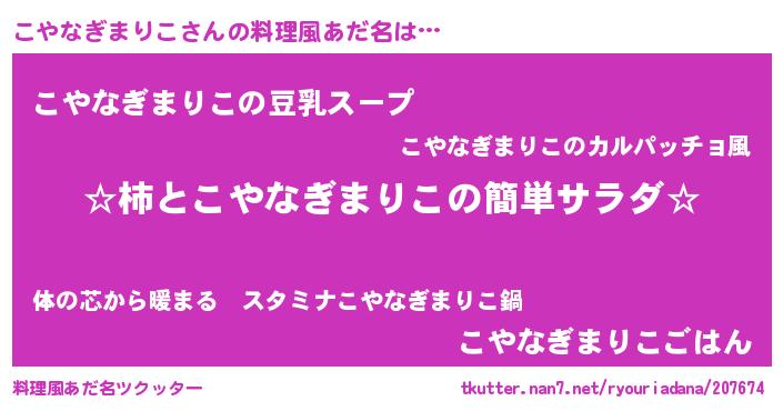 | 胡散臭い通販商品みたいなあだ名 | 『信頼と実績のサプリメント…その名も「こやなぎまりこ」』 |