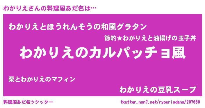 | ピコ太郎風あだ名 | 『ワカ太郎』『ワコ一郎』『ピコワ郎』 |