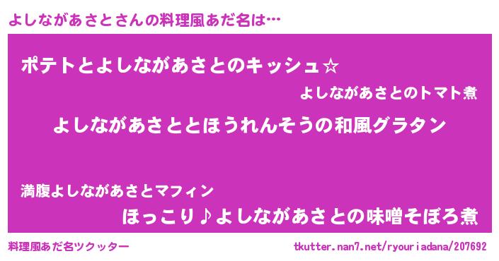| ポケモン風あだ名 | 『ヨシキング』『ヒヨシナガアサト』 |