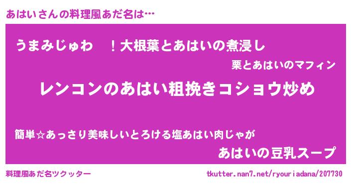 | ヘコむあだ名 | 『牛乳』『あはぷりん』『あはい(爆)』 |