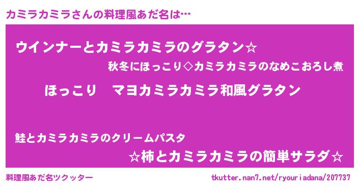 | 男性向けラノベタイトル風あだ名 | 『この素晴らしい世界にカミラカミラを!』 |