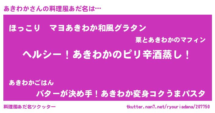 | 意味不明あだ名 | 『自称あきわか』『たけのこ科あきわか属』 |