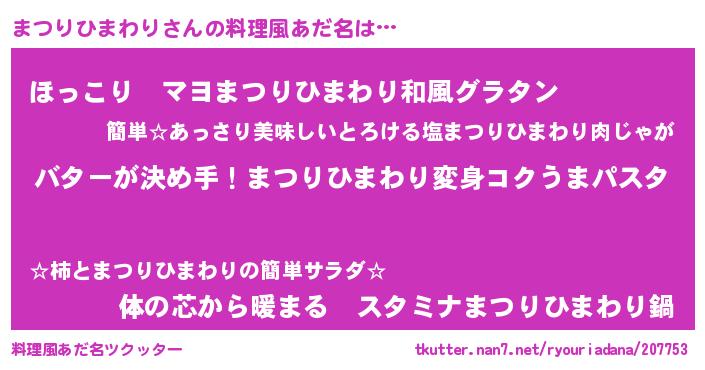 | 男性向けラノベタイトル風あだ名 | 『おまえをオタクにしてやるから、俺をまつりひまわりにしてくれ! 』 |
