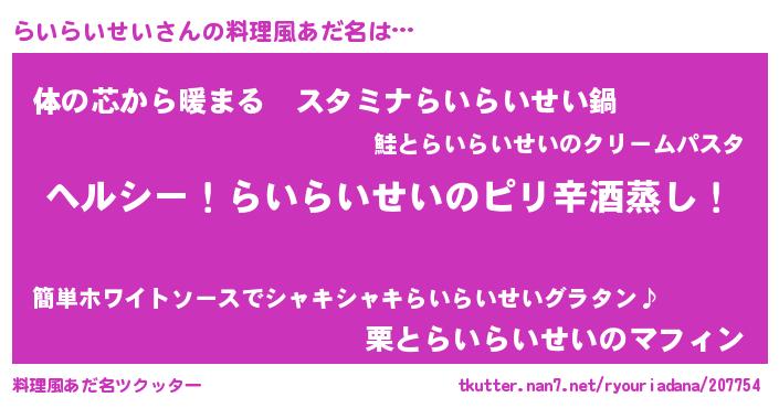 | 意味不明あだ名 | 『自称らいらいせい』 |
