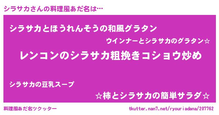 | 意味不明あだ名 | 『自称シラサカ』『ヨモギ科シラサカ属』 |