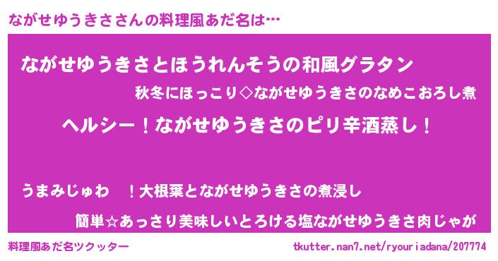 | ヘコむあだ名 | 『ながせゆうきさ(笑)』『レバニラ』 |