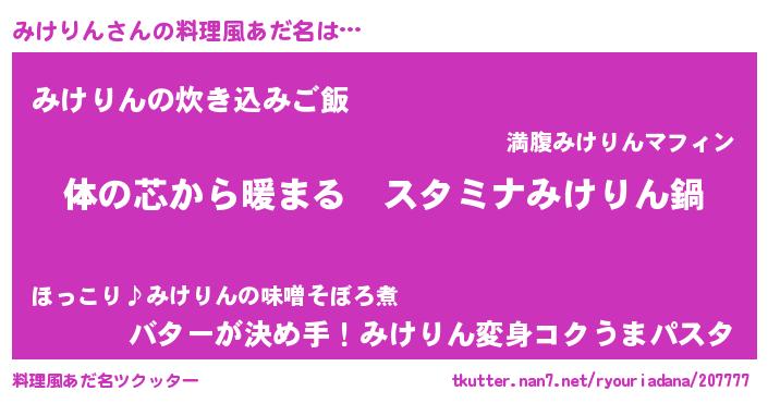 | ヒーロー風カッコイイあだ名 | 『ウルトラみけりんマン』『ネオミケリン』 |
