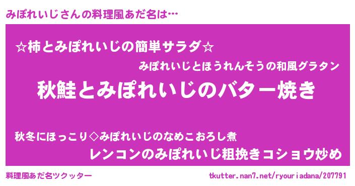 | 胡散臭い通販商品みたいなあだ名 | 『来世でも幸せになれる健康食品…その名も「みぽれいじ」』 |