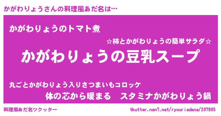 | 意味不明あだ名 | 『とにかく怪しいかがわりょう』 |