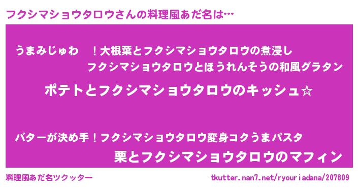 | 女子向けラノベタイトル風あだ名 | 『フクシマショウタロウの卵を拾いまして』 |
