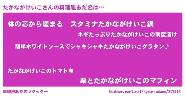 | ポケモン風あだ名 | 『ヒタカナガケイコ』『タカナダネ』 |
