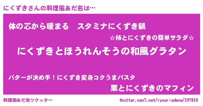 | 男性向けラノベタイトル風あだ名 | 『転生したらにくずきだった件』 |