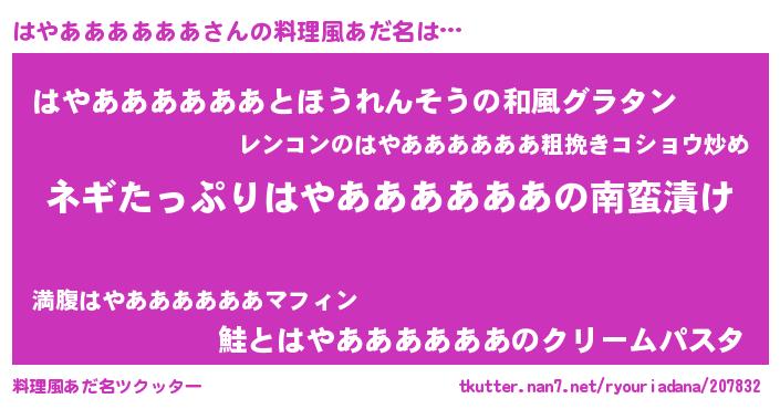 | ヘコむあだ名 | 『はやふぇ~』『はやああああああ(小並感)』 |
