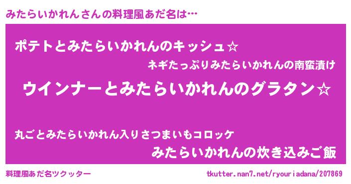 | 欧米人風あだ名 | 『みたらいかれんクリステル』 |