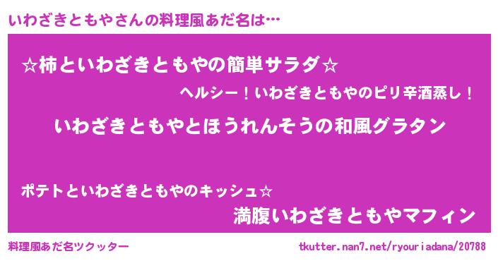 | 女子向けラノベタイトル風あだ名 | 『いわざきともやの玉の輿計画!』 |