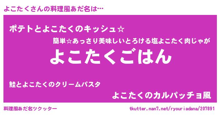 | 胡散臭い通販商品みたいなあだ名 | 『伝統あるサプリメント…その名も「よこたく」』 |