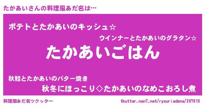 | ポケモン風あだ名 | 『タカキング』『ヒタカアイ』 |