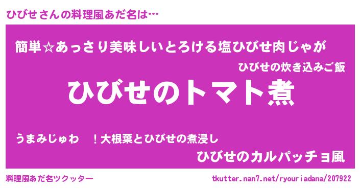 | ヘコむあだ名 | 『ひびせ(爆)』『レバニラ』『ひびを』 |