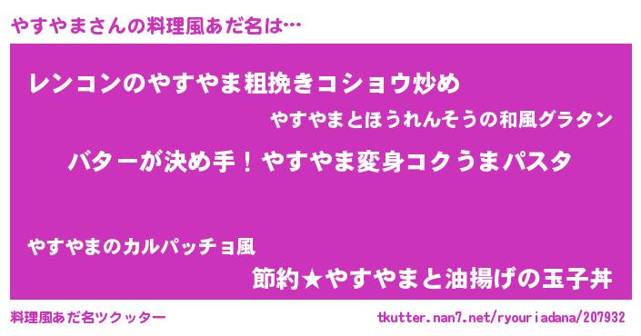 | 男性向けラノベタイトル風あだ名 | 『ノーゲーム・ノーヤスヤマ』 |