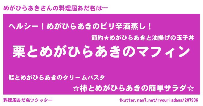 | 意味不明あだ名 | 『自称めがひらあき』 |