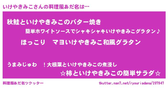 | ヘコむあだ名 | 『いけやきみこ(笑)』『いけを』 |