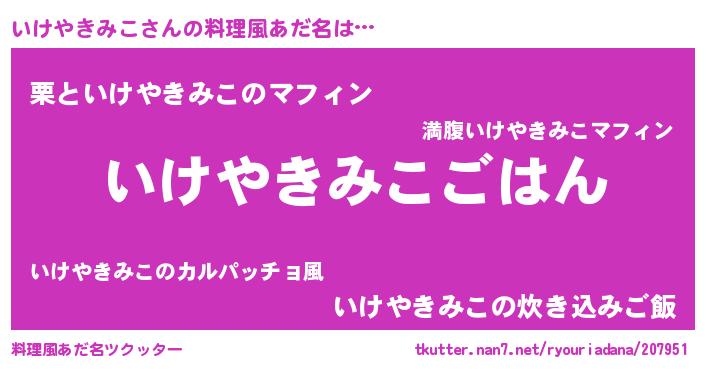 | 男性向けラノベタイトル風あだ名 | 『転生したらいけやきみこだった件』 |