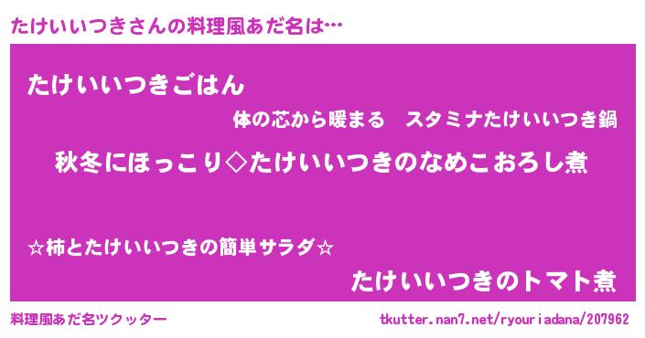 | ヘコむあだ名 | 『レバニラ』『たけいいつき(震え声)』 |