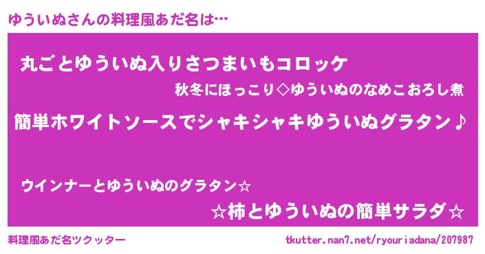 | 意味不明あだ名 | 『とにかく怪しいゆういぬ』 |