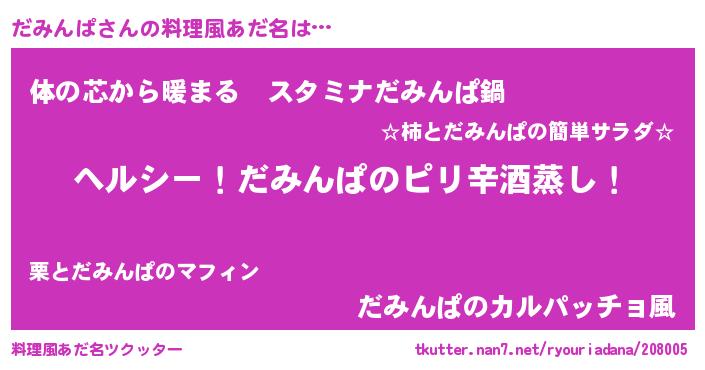 | 胡散臭い通販商品みたいなあだ名 | 『芸能人もオススメする高麗人参…その名も「だみんぱ」』 |