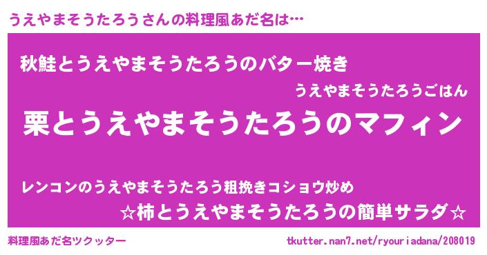 | 胡散臭い通販商品みたいなあだ名 | 『絶対に幸福をもたらす健康食品…その名も「うえやまそうたろう」』 |
