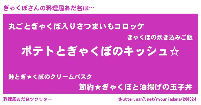| ピコ太郎風あだ名 | 『ギャ次郎』『ギコ二郎』『ギギ太郎』 |
