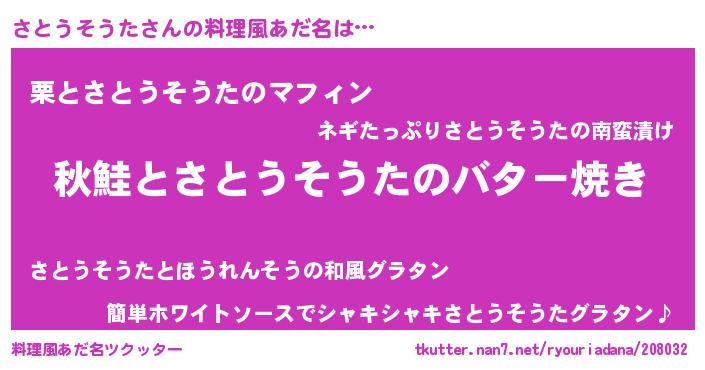 | 胡散臭い通販商品みたいなあだ名 | 『来世でも幸せになれる健康食品…その名も「さとうそうた」』 |