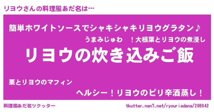 | 意味不明あだ名 | 『とにかく怪しいリヨウ』『自称リヨウ』 |