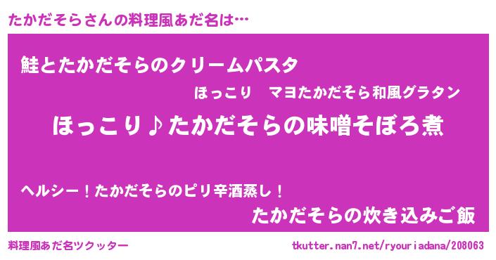 | 女子向けラノベタイトル風あだ名 | 『(仮)たかだそらのやんごとなき事情』 |
