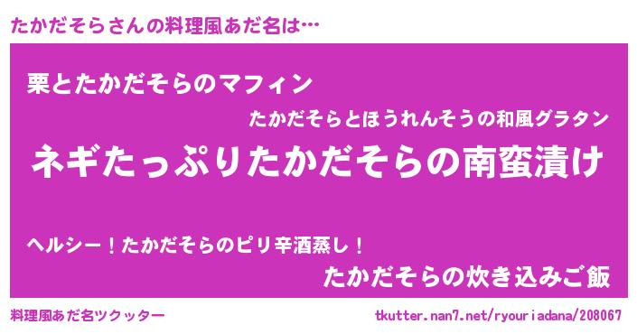 | 胡散臭い通販商品みたいなあだ名 | 『億万長者になれる水晶球…その名も「たかだそら」』 |