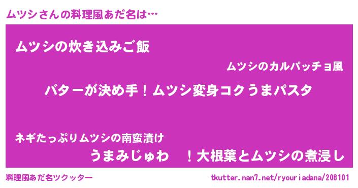 | ヘコむあだ名 | 『なまこ酢』『ムツふぇ~』 |