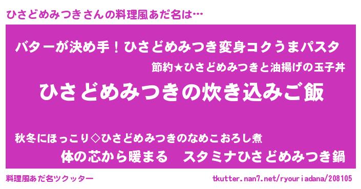 | 欧米人風あだ名 | 『ひさどめみつき・ステッグマイヤー』 |