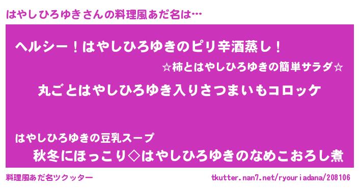 | 意味不明あだ名 | 『住所不定無職はやしひろゆき(53歳)』 |