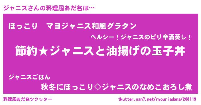 | ヘコむあだ名 | 『ジャふぇ~』『ジャニス(震え声)』 |