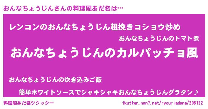 | 意味不明あだ名 | 『住所不定無職おんなちょうじん(5歳)』 |