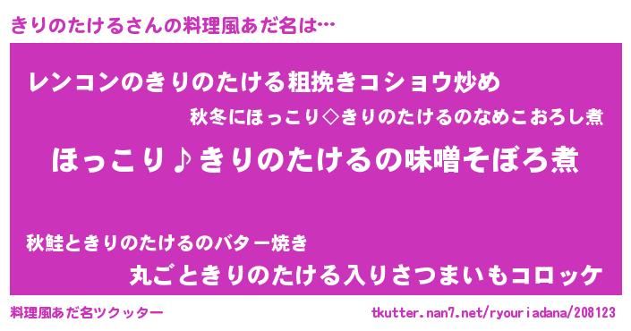 | ヘコむあだ名 | 『きりにゅー』『きりのたける(震え声)』 |