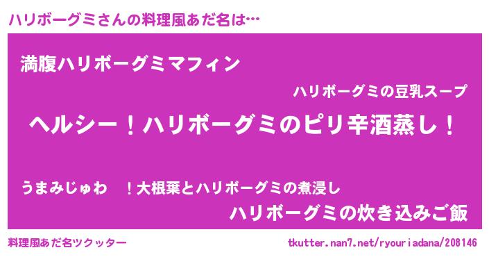 | 男性向けラノベタイトル風あだ名 | 『Re:ハリボーグミから始める異世界生活』 |