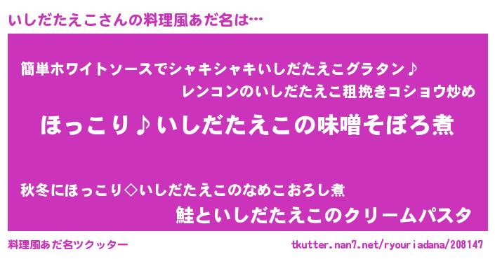 | ポケモン風あだ名 | 『イシチュウ』『ヒイシダタエコ』 |