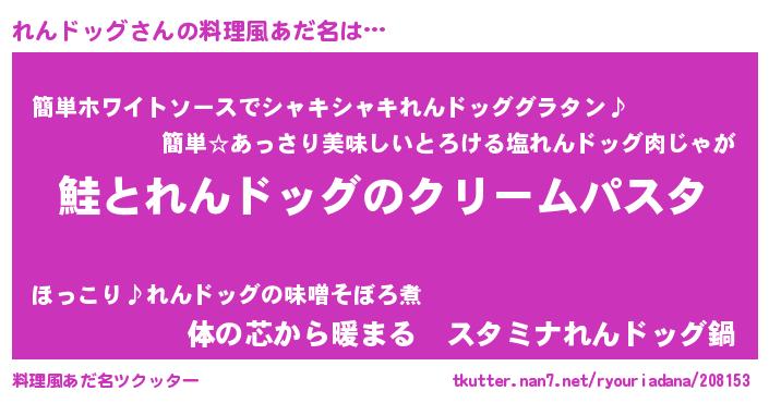 | 女子向けラノベタイトル風あだ名 | 『死神れんドッグの再婚』 |