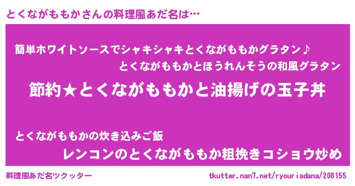 | 男性向けラノベタイトル風あだ名 | 『トクナガモモカアートオンライン』 |