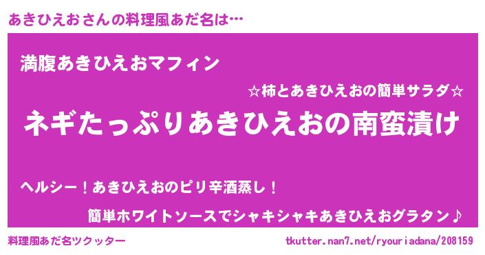 | ヘコむあだ名 | 『あきにゅー』『あきひえお(笑)』 |