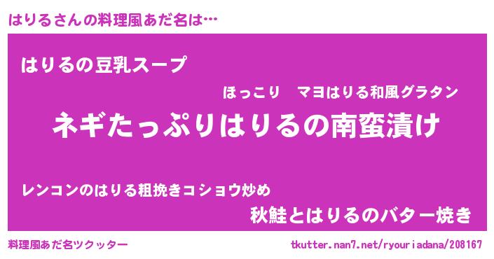 | 意味不明あだ名 | 『ペロリンはりる』『永久保存はりる』 |